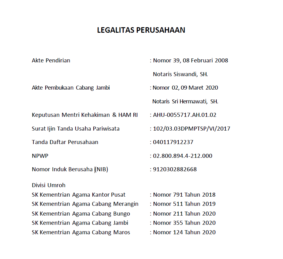 - Kepuasan Jamaah: Kami mengutamakan kepuasan jamaah melalui layanan yang berkualitas dan responsif.